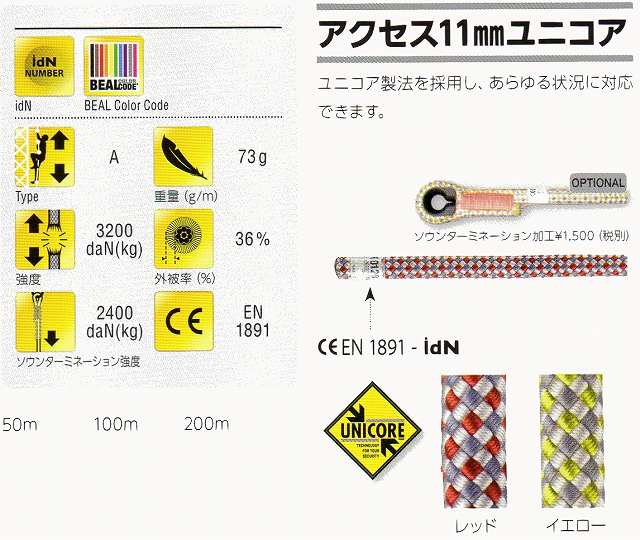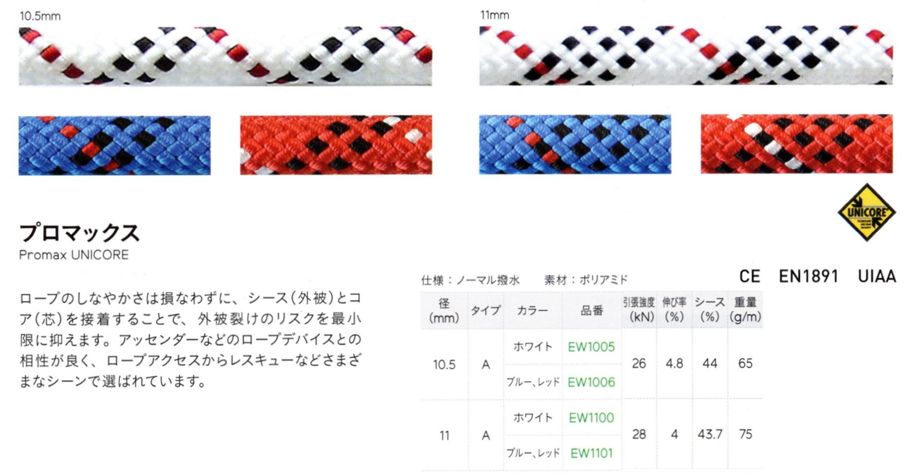 ローリー、ダブルストップディッセンダーに最適 ユニ・コア・プロ ロープ